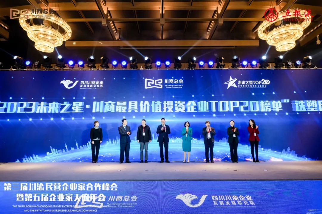 变局之下,创新成为企业发展的关键变量,科技成为企业发展的基础逻辑。为了继续助力更多科技企业成长发展,川商总会、川商企业发展战略研究院联合三大证券交易所西部(西南)基地和众多知名机构,共同发起“未来之星·川商最具价值投资TOP20榜单”选塑公益计划,持续挖掘、陪伴、培育一批有高成长性、硬科技属性的川商科技创新型企业,助力川商企业锻造属于自己的创新硬实力。会上,省工商联主席唐燕,省发展改革委二级巡视员杨进,经济和信息化厅总经济师袁冰,科技厅副厅长景世刚,省市场监管局总经济师董若洁,省地方金融监管局副局长傅瑜,省经济合作局副局长周密,川商总会会长、新希望集团董事长刘永好八位嘉宾上台,共同启动“2023未来之星——川商最具价值投资企业TOP20榜单”选塑。