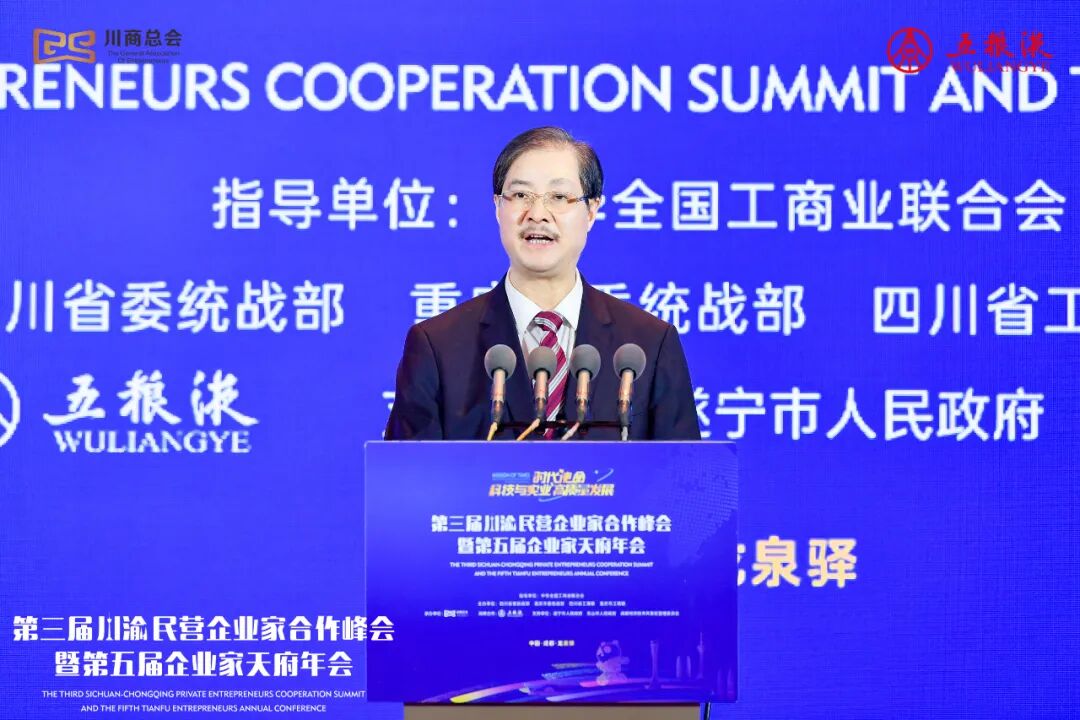 四川省委常委、省委统战部部长赵俊民,重庆市政协党组成员、副主席段成刚出席峰会并致辞,四川省委统战部副部长、省工商联党组书记唐强主持峰会。
